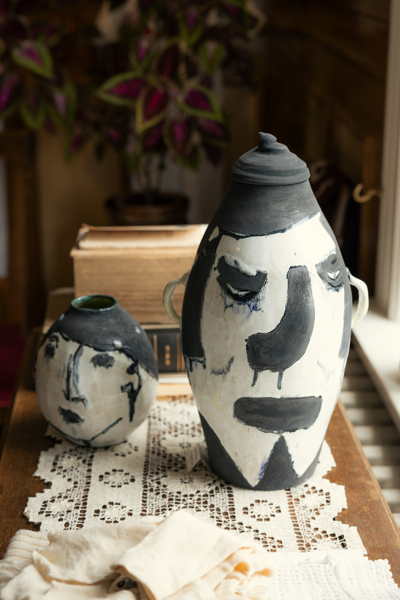 Margrét sótti innblástur í fjölskyldumyndir sem prýða veggi á Sigurhæðum. Með verkunum gaf hún fyrrum ábúendum Sigurhæða nýja ásjónu í keramíki. Að sýningu lokinni samþykkti listasafnsráð kaup á verkunum og eru þau nú orðin hluti af safneign Listasafnsins á Akureyri, sem er mikið fagnaðarefni.