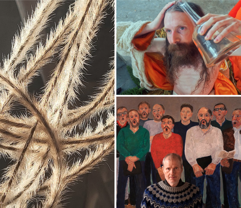Þrír listamenn mætast á samsýningu og vinna með náttúruna sem efnivið, innblástur og samtal. Páll á Húsafelli mótar verk sín í stein og málar á svell, efni sem bera með sér sögur landsins og anda þess sem býr í hverjum æðastreng og steinblæ. Lene Zachariassen, norsk að uppruna en búsett á Íslandi, vinnur í samhljómi við náttúruleg efni þar sem mjúkir þræðir og áferð verða að samtali milli handar og lífræns efnis. Í myndbandi Maríu Tórgarð við tónlist &Bartal fléttast hreyfing, hljóð, vatn og ljós í ljóðræna hugleiðingu um tilvist og uppruna.